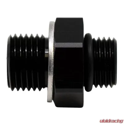 Introducing the 6AN ORB Male to M16 X 1.5 Metric Male adapter, complete with an O-Ring and crush washer, all beautifully finished in a sleek matte black anodized coating.