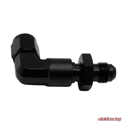 Introducing our 6AN Female Flare Swivel to 6AN Male Flare 90-Degree Bulkhead! With its extended length and sleek anodized matte black finish, this fitting is a fantastic addition to your setup.