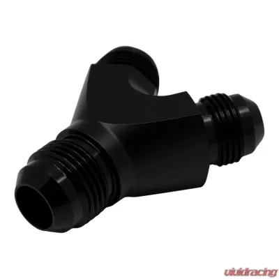 Introducing the 8AN Male Flare to 8AN Male Flare to 10AN Male Flare Y Block Fitting, finished in a sleek Anodized Matte Black. This fitting is designed for those who appreciate quality and style in their automotive components.