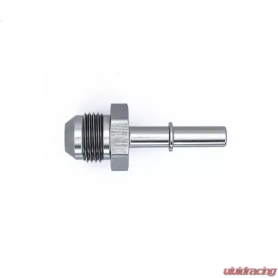 Introducing the 8AN Male Flare to 5/16 Inch Male EFI Quick Connect Adapter, crafted with a sleek anodized DW Titanium finish. This adapter is designed to fit seamlessly into your vehicle's system.