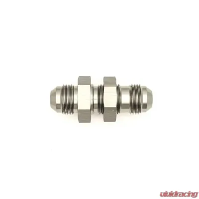 Introducing the 8AN Male Flare to 8AN Male Flare Bulkhead Adapter, complete with a nut and finished in a stunning anodized DW Titanium. This adapter is built to meet your automotive needs with both style and functionality.