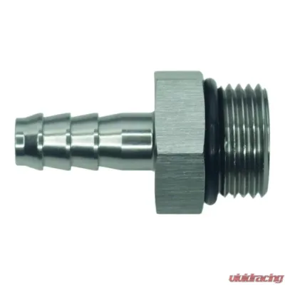 Introducing the 8AN ORB Male to 5/16 Inch Male Triple Barb Fitting, complete with an O-Ring and finished in a sleek anodized DW Titanium. This fitting is designed to meet your needs with style and functionality!