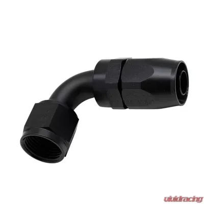 Introducing the 10AN Female Swivel 90-Degree Hose End, crafted from durable CPE and finished in a sleek Anodized Matte Black.