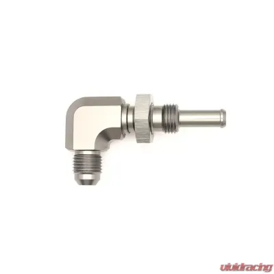 Introducing our 6AN Male Flare to 5/16 Inch Male Barb Bulkhead Adapter with a 90-Degree angle! Crafted from anodized DW Titanium, this adapter is not only durable but also adds a sleek touch to your setup.