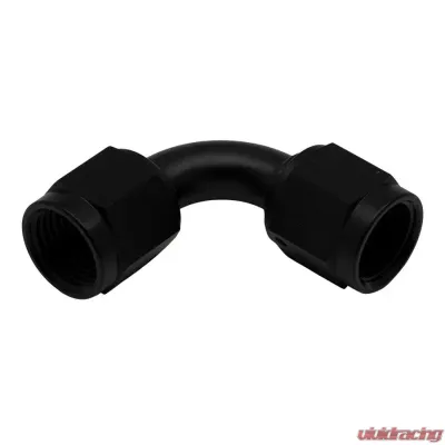 Introducing the 6AN Flare Female Swivel 90-Degree to 6AN Flare Female Swivel, beautifully finished in Anodized Matte Black. This fitting is designed to be both functional and stylish!