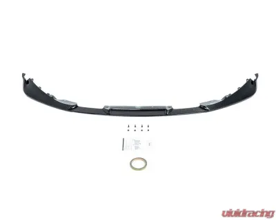 Now, this front lip isn’t just for show. It’s crafted from high-quality CFRP (that’s Carbon Fiber Reinforced Polymer for those not in the know) with a tight 2x2 weave that looks as good as it performs. You can really see the craftsmanship in the detail, from the fitment to the finish. And trust me, it’s not just about aesthetics—this thing is built to enhance your ride’s aerodynamics, whether you’re cruising the streets or hitting the track.