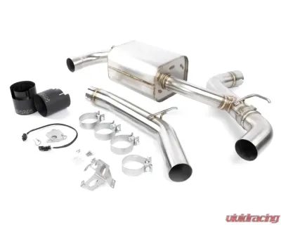 The enhancements to the sound emitted by the Dinan system are undeniable, making every drive a joy. For those quieter moments—like late-night arrivals or early morning departures—factory valve control is retained. This allows the system to function like a straight-pipe setup, maximizing flow and volume when the valve is open, while producing a more subdued sound when closed, redirecting exhaust gases through the muffler. It’s the ideal combination of civility when you're cruising gently and the full spectrum of auditory excitement when you want to let loose. Whatever the occasion, the Dinan valved axle-back exhaust system is the perfect choice for enthusiasts who crave sound without compromise.