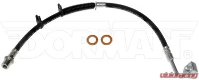 This automotive brake hydraulic hose was precision-engineered to match the fit, function and performance of the original brake hose on specific vehicles and positions to ensure safe, long-lasting durability as part of a complete brake repair.