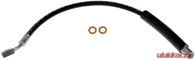 This automotive brake hydraulic hose was precision-engineered to match the fit, function and performance of the original brake hose on specific vehicles and positions to ensure safe, long-lasting durability as part of a complete brake repair.