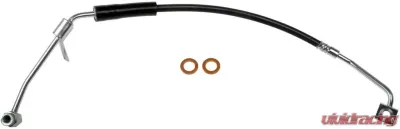 This automotive brake hydraulic hose was precision-engineered to match the fit, function and performance of the original brake hose on specific vehicles and positions to ensure safe, long-lasting durability as part of a complete brake repair.