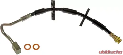 This automotive brake hydraulic hose was precision-engineered to match the fit, function and performance of the original brake hose on specific vehicles and positions to ensure safe, long-lasting durability as part of a complete brake repair.