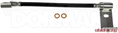 This automotive brake hydraulic hose was precision-engineered to match the fit, function and performance of the original brake hose on specific vehicles and positions to ensure safe, long-lasting durability as part of a complete brake repair.