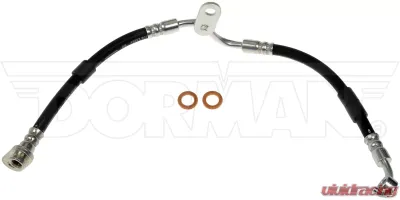 This automotive brake hydraulic hose was precision-engineered to match the fit, function and performance of the original brake hose on specific vehicles and positions to ensure safe, long-lasting durability as part of a complete brake repair.