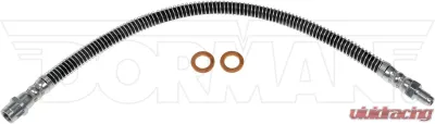 This automotive brake hydraulic hose was precision-engineered to match the fit, function and performance of the original brake hose on specific vehicles and positions to ensure safe, long-lasting durability as part of a complete brake repair.