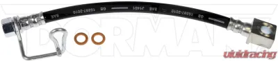 This automotive brake hydraulic hose was precision-engineered to match the fit, function and performance of the original brake hose on specific vehicles and positions to ensure safe, long-lasting durability as part of a complete brake repair.