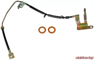 This automotive brake hydraulic hose was precision-engineered to match the fit, function and performance of the original brake hose on specific vehicles and positions to ensure safe, long-lasting durability as part of a complete brake repair.
