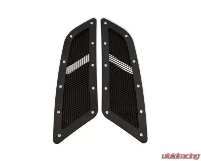 Add a touch of aggression to the front of your 2015-2022 Mustang GT while helping to vent some heat with Drake's direct-fit heat extractor hood vents. These stylish vents showcase a matte black honeycomb mesh pattern that complements most grille designs, giving your ride a polished look. The Speed Mesh Hood vents come with a sleek matte black frame that fits perfectly into the factory GT hood's recess. Plus, the stainless bolts provide just the right amount of contrast without being too flashy. Each kit includes integrated backing plates that can be easily removed to boost airflow. Sold as a pair, these vents are a direct fit and can be installed right in your driveway or parking lot!