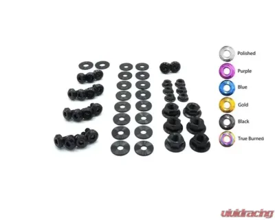This 47 piece kit includes bolts, nuts, and washers manufactured from extremely durable, anticorrosive, and lightweight GR5 titanium metal.