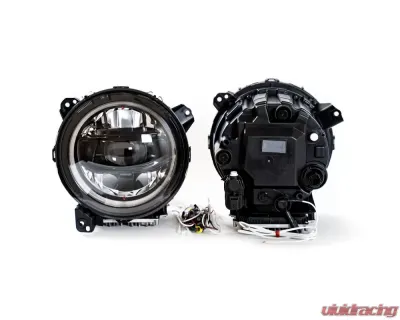 These replacement Jeep Wrangler and Gladiator LED headlights are OEM quality and style, but feature a unique black bezel. These are compatible with the Wrangler JL and Gladiator JT, and are perfect for replacing factory halogen headlights.