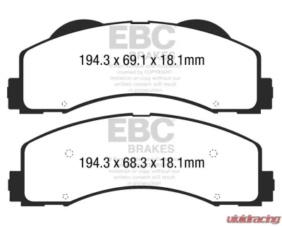 The EBC Brakes warranty covers defects in materials or workmanship only. Warranty is for replacement of similar product or refund of purchase value only excluding all labour and ancillary charges such as vehicle towing, fitting, inconvenience, purchasing of other manufacturers products and is good for a period of twelve months from date of purchase or 10,000 miles of highway use. Proof of mileage will be required. Warranty is invalid if product is used for taxi/hire car, racing, rally, drifting, trackday experience driving, or any other form of competition. There is absolutely no warranty on any EBC product for race use. Warranty does not cover brake noise or normal wear and tear. Some brake pad systems cause pads to wear faster than others. Drivers/users must assess the performance and durability of EBC Brakes products themselves if any EBC product is to be used in racing.