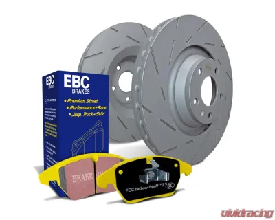 If you're looking to step up your braking game, this kit is a solid choice. It's got some nice upgrades over the S5 Kit, especially when it comes to cutting down on wind noise. Those fine slotted USR rotors really do the trick. You’ll also get EBC's Yellowstuff pads in there, which are known for their high friction and quick bite. They come fully shimmed and chamfered, plus they’re finished with that patented Brake-in™ coating to help them seat quickly. So, you won't be left waiting around for your brakes to feel right.