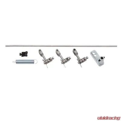The Edelbrock 1034 throttle linkage kit is designed for Triple (3) Edelbrock 94 carburetors. You’ll find everything you need in the kit, including a return spring, bracket, and linkage with provisions for kickdown and throttle connection.