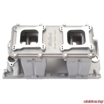 If you're looking to upgrade your 396-502 c.i.d. big-block Chevy V8 with large oval-port heads (from 1975 and earlier), the Edelbrock part #7115 Street Tunnel Ram 2-O intake manifold is just what you need. This manifold is specifically designed for those who are passionate about performance, making it a fantastic choice for applications like pro-street or marine setups where low-end torque isn't the main focus.