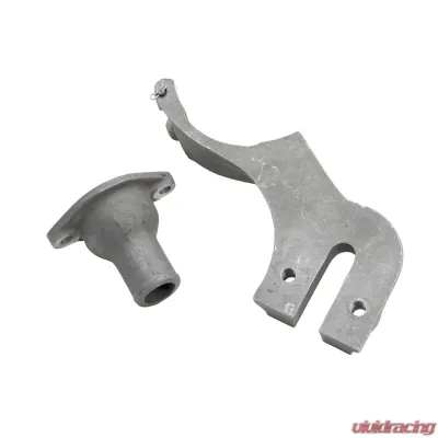 The kit comes complete with an offset generator bracket and a water outlet (thermostat housing). The offset bracket connects to the standard generator mount flange on your manifold, cleverly moving the generator out to the right. This simple adjustment ensures that it’s clear of the forward-most carburetor, making your installation much easier.