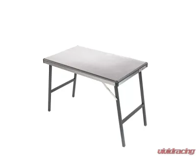 The Eezi-Awn K9 Camp Table, made from stainless steel and aluminum, is a lightweight and compact folding table that stores easily under you Roof Rack with the Table Mounting Kit, saving valuable interior storage capacity. Available in multiple sizes, these tables provide an excellent place to prepare and serve meals, fix your fit, hold the lantern, and generally avoid placing your stuff in the dirt. The surface is made of a dimpled and polished stainless teel surface with complimenting black polycarbonate corners, and is supported by a set of black, powder-coated aluminum folding legs. The dimpled surface not only looks great, but it increases the material rigidity, allowing for a thinner and lighter surface. The aluminum frame and legs are light and corrosion resistant.