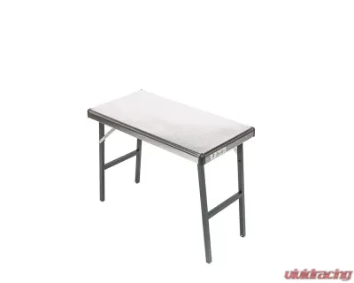 The Eezi-Awn K9 Camp Table, made from stainless steel and aluminum, is a lightweight and compact folding table that stores easily under you Roof Rack with the Table Mounting Kit, saving valuable interior storage capacity. Available in multiple sizes, these tables provide an excellent place to prepare and serve meals, fix your fit, hold the lantern, and generally avoid placing your stuff in the dirt. The surface is made of a dimpled and polished stainless teel surface with complimenting black polycarbonate corners, and is supported by a set of black, powder-coated aluminum folding legs. The dimpled surface not only looks great, but it increases the material rigidity, allowing for a thinner and lighter surface. The aluminum frame and legs are light and corrosion resistant.