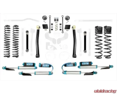 These kits allow for use of your choice of any aftermarket 2.5-5 inch lift shock or use of our EVO SPEC tuned 2.5 inch Remote Reservoir King Shocks. These kits come with a set of 2.5 inch lift springs specific to each corner which will keep the Jeep Gladiator JT level side to side.