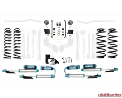 These kits come with a set of 2.5 inch Plush Ride Lift springs specific to each corner which will keep the Jeep Wrangler JLU more level side to side and will maintain a unique and compliant ride quality. EVO MFG Long Arm joints feature Johnny Joints on both ends of the control arms for restriction free articulation and motion with no wearable and limited bond rubber. All long arms come complete with EVO1 on vehicle adjuster making alignment a snap allowing for the ability to adjust control arm lengths while completely installed on the vehicle at all times.