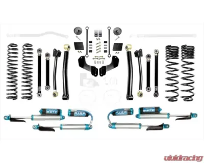 These kits allow for use of your choice of any aftermarket 2.5-5 inch lift shock or use of our EVO SPEC tuned 2.5 inch Remote Reservoir King Shocks. These kits come with a set of 2.5 inch lift springs specific to each corner which will keep the Jeep Gladiator JT level side to side.