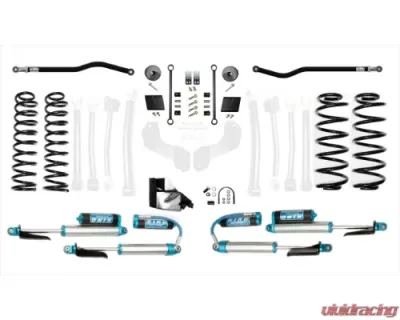These kits come with a set of 2.5 inch Plush Ride Lift springs specific to each corner which will keep the Jeep Wrangler JLU more level side to side and will maintain a unique and compliant ride quality. EVO MFG Long Arm joints feature Johnny Joints on both ends of the control arms for restriction free articulation and motion with no wearable and limited bond rubber. All long arms come complete with EVO1 on vehicle adjuster making alignment a snap allowing for the ability to adjust control arm lengths while completely installed on the vehicle at all times.