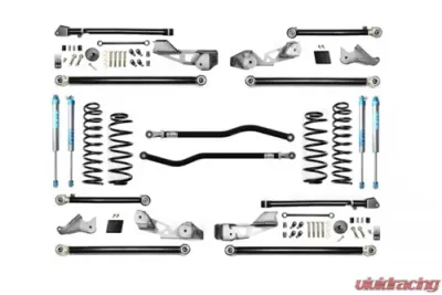 The mounting brackets align to the frame simply using existing factory holes giving complete assurance of proper locating during install. Simply bolt brackets up to frame with existing hardware and weld them in place. These kits come with a set of 2.5 inch Plush Ride Lift springs specific to each corner which will keep the Jeep Wrangler JLU more level side to side and will maintain a unique and compliant ride quality.