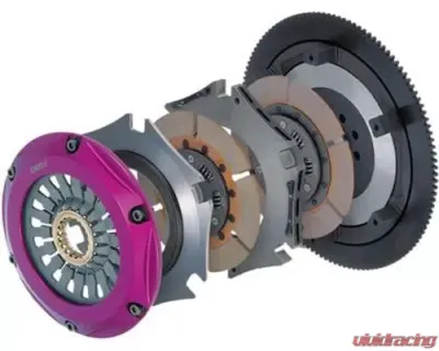 EXEDY's multi-plate clutches are tailored for serious power. The twin plate configuration can handle up to 500 ft/lbs of torque at the flywheel, making it perfect for street applications. If you're pushing the limits with a built engine, consider the triple plate option, which is rated for about 800 ft/lbs of torque. Both options come with a lightweight chromoly steel flywheel and a striking purple anodized forged aluminum clutch cover.