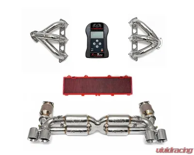 Complete high-performance exhaust & intake solution for the 997 GT2; includes Supersport X-Pipe w/ 200-cell HJS Sport Cats & Deluxe GT2 Style Tips, Sport Headers, BMC F1 Air Filter and optional XperTune Performance Software with Handheld Tuner.