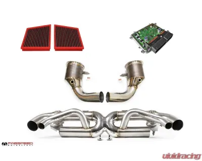 Complete high-performance exhaust solution for the Porsche 992 Carrera; fantastically daily-drivable sound and power from Fabspeed's Supersport X-Pipe Exhaust System, HJS Sport Catalytic Converters, Sport Headers, and an XperTune Performance Software Upgrade by Fabspeed to compliment all the hardware upgrades.
