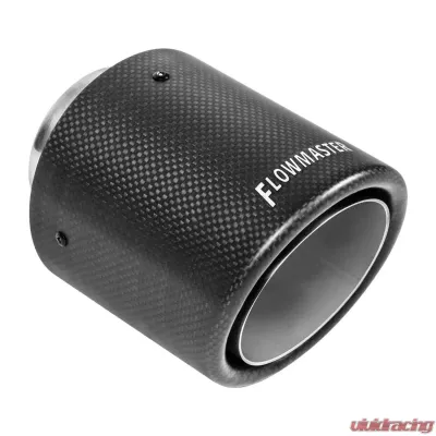 Looking to give your vehicle a stylish touch? Check out this eye-catching exhaust tip! With a sleek 4.00 inch outer diameter and a chic angle cut rolled edge, it's crafted from genuine carbon fiber that not only looks fantastic but also stands the test of time. The carbon fiber is paired with a sturdy 304S stainless steel inner core, ensuring durability without compromising on style. This universal weld-on exhaust tip fits perfectly with 2.50 inch outer diameter tubing and proudly showcases the Flowmaster logo, measuring 5.25 inches in total length.