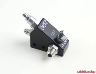 PSC remote pressure relief valve is designed to Only work with SPX series offroad racing power steering pumps that have had the internal flow control/pressure relief disabled. The adjustable relief valve provides away to prevent over pressurizing the power steering system and bleed the fluid back to the reservoir tank. The cartridge relief valve is preset to 1650psi and can be adjusted after installed on the car if need be. The valve block Features a test port that allows a pressure gauge to be installed to check the power steering systems current operating pressure.