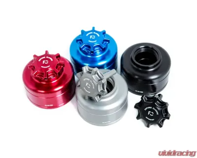 Rather than completely reinventing the power steering reservoir's form factor, we give it exactly what it needs: room to expand. By threading our new reservoir onto the factory unit, you effectively add over 35mm of fluid expansion space while also dressing up your engine bay. The additional headroom not only safeguards against messy engine compartments as intended, but also guarantees a consistent steering feel. Since there is enough area for the fluid to travel, there is no cavitation between air and fluid, resulting in driving confidence in the most extreme conditions.