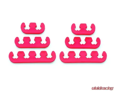 Keep your 7mm or 8mm ignition wires separated to avoid ignition wire cross firing with Mr. Gaskets wire separator kit. Routes wires away from exhaust heat for a clean look. Made of heat resistant red ABS plastic. Great for competition and street use.