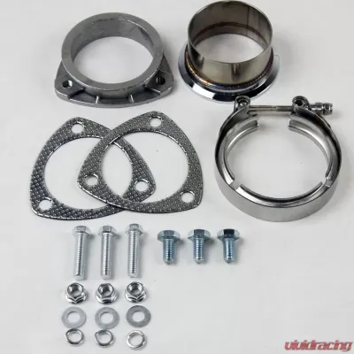 3.0" (76mm) V band to Straight Connection with Gaskets - Converts 3-Bolt Collector to V band Flange with Clamp and Abutment.