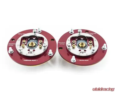 These plates feature over 30mm of total camber adjustment with the ability to make corrective caster changes to equalize side-to-side caster in the stock position.Other features include replaceable waterproof German axial load bearings, and isolated aerospace grade strut bearings for long life, less deflection, on stock sized or aftermarket springs.Our camber plates are also engraved with the Ground Control logo and markings which can be used to locate the plate in the stock position for easy, fast adjustments.Camber is separately adjustable by the center slider, without removing any components from the car. The priority of this design is to allow fast, easy, and repeatable adjustment from street to track and back.
