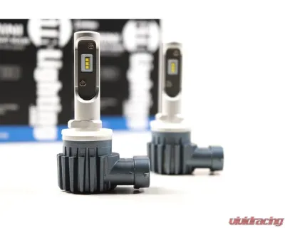 The GTR Lighting CSP Mini LED Bulb: was designed with two main ideas in mind: #1: Perfect Fitment into any fog light housing - specially designed to closely mimic the size and shape of your original halogen light bulb for maximum capability! #2: Perfect Beam Pattern due to the alignment and design of the low-profile copper PCB and Philips Z ES "CSP" style LED chips. This LED configuration: creates a similar light output profile as compared with the original filament bulb for an accurate beam pattern. Heat Sink Technology: No Fan Noise! Fans work well to cool down powerful LED fog light bulbs, but the GTR Lighting CSP Mini is unique blend of power and efficiency that does not require active cooling. Coming in at only 16 watts of power, and featuring the Philips Z ES high-efficiency chips, these bulbs create about 2 times as much light as your original halogen bulbs at less 33% less power consumption. In short, they're super efficient so they don't need a huge fan mounted to the heat sink to stay cool! The powder-coated aluminum body of the bulb acts as the heat sink for both the internal driver and the LED bulbs themselves. Thermal Management: The GTR Lighting CSP Mini LED bulbs are equipped with a sophisticated thermal protection circuit to avoid failures due to overheating problems. We've tested these bulbs at 194 degrees Fahrenheit for 15 days straight without failure! The maximum power draw of these bulbs is 16 watts of power and if the LED thermister sensor reaches a temperature of 140 degrees Fahrenheit or hotter the temperature protection kicks in and reduces the light output to a safe level. This smart technology allows the bulbs to never get so hot that they burn out the chips, which is the most common reason for LED bulb failure. Even at a reduced level of 13 watts of power consumption (to prevent over-heating... ), the GTR Lighting CSP Mini LED fog light bulbs will still be noticeably brighter than your old halogen bulbs! This function happens 100% automatically and ensures the longest possible lifespan of your fog light bulbs! Furthermore: the GTR Lighting CSP Mini LED fog light bulbs are equipped with the highest quality possible chip technology. We use the genuine Philips Z ES "CSP" style LED chips that have a higher heat-resistance rating than other similar versions. Beware of imitators! If someone is selling a bulb that looks like ours, make sure they're using the good chips like Philips ZES! These LED chips are rugged, heat-resistant and create the tightest optical source for the best beam pattern. Your fog light bulb LED chips really do make a difference! Brightness: Your original halogen incandescent fog light bulbs produce roughly 1,000 Lumen per light bulb, at about 55w of power consumption. The GTR Lighting CSP Mini bulbs produce 2,500 Lumen of light at only 16w of power consumption! Not only do these bulbs have the ability to be 2-3 times brighter than your old light bulbs, in most applications they will also mimic the OEM beam pattern to protect other drivers' vision at night! Want your Fog Lights: to shine brighter and further but your current bulbs just aren't cutting it? Want to get rid of that old yellow tinted light and give your ride an updated look with a cool white light beam? Look no further! Built with high power premium quality Philips Z ES LEDs, these LED fog light bulbs will cast a precise light beam that will give you increased visibility, a wider viewing angle, and a much longer lifetime over conventional halogen bulbs. The bulbs feature great heat management with 1070 aluminum construction, Intelligent Thermal Management, and the newest "CSP" style LED chipset from Philips. Fitment: Match the bulb number of your original application (example: 9005, 9006, H4, H13, etc... ) with the matching GTR Lighting CSP Mini LED fog light bulb and replace bulb for bulb. Fits all applications including projectors, and fog lights with dust shield covers. NOTICE: If your vehicle uses a CAN BUS system to operate the fog lights, you may need additional parts like an LED Canbus or PWM module. Contact us for details if you are unsure.