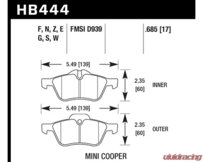 Upgrade your Mini Cooper's braking system with Hawk Performance brake pads and experience the difference in control and reliability. Enjoy a quieter ride with less dust, all while knowing you're equipped with some of the best brake technology available.