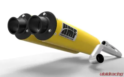 HMF Racing Dual 3/4 Performance Exhaust System, Yellow Turn Down, Black Tips, Outer Mount, Can-Am Commander 1000 (14-15)