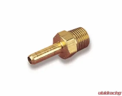 Introducing the Spark Fitting Metering Block, designed with a 180-degree style and featuring a 1/8 NPT thread. This fitting is crafted to meet the high standards you expect from Holley.