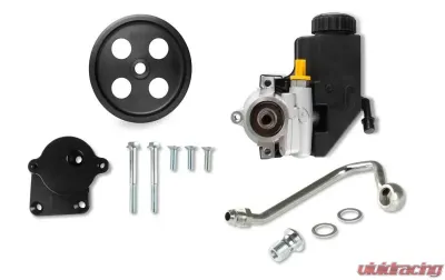 Power Steering Pump Assembly; Fits w/Gen III Hemi Engines Swap; Incl. Plastic Reservoir; Billet Aluminum Mount; Black Anodized Finish;