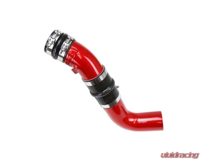 The HPS 17-120R is crafted from 3-1/2" mandrel-bent 6061 aluminum tubing, featuring a CNC-machined billet flange for a precise fit. The two-piece design simplifies installation, accommodating engine movement without compromising performance. This pipe utilizes the factory intercooler quick connect, making it a straightforward swap that doesn't require any modifications or retuning.